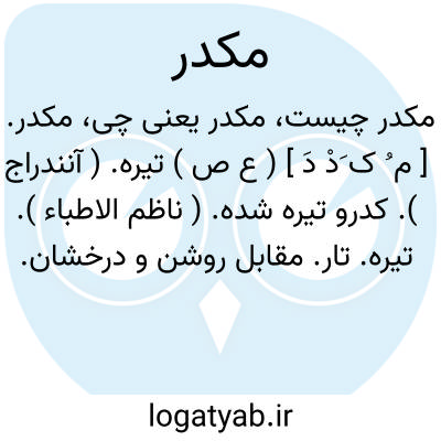 مکدر. [ م ُ ک َدْ دَ ] ( ع ص ) تیره. ( آنندراج ). کدرو تیره شده. ( ناظم الاطباء ). تیره. تار. مقابل روشن و درخشان. ( یادداشت به خط مرحوم دهخدا ):