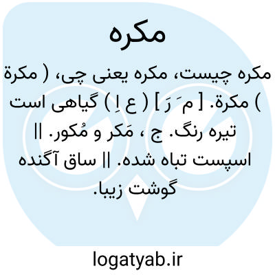 ( مکرة ) مکرة. [ م َ رَ ] ( ع اِ ) گیاهی است تیره رنگ. ج، مَکر و مُکور. || اسپست تباه شده. || ساق آگنده گوشت زیبا. ( منتهی الارب ) ( آنندراج ) ( از ناظم الاطباء ) ( از اقرب الموارد ). || غوره خرمای سخت نزدیک به رطب رسیده. ( منتهی الارب ) ( ناظم الاطباء ) ( از اقرب الموارد ). || تدبیر و حیله در جنگ. ( از اقرب الموارد ).