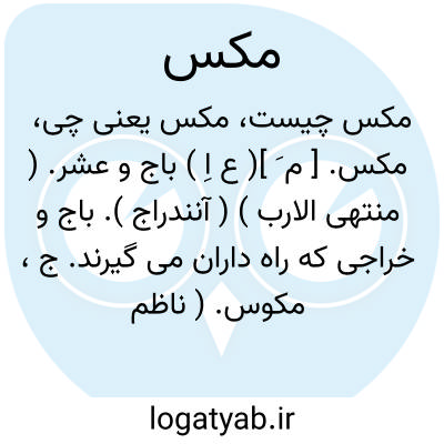 مکس. [ م َ ]( ع اِ ) باج و عشر. ( منتهی الارب ) ( آنندراج ). باج و خراجی که راه داران می گیرند. ج، مکوس. ( ناظم الاطباء ). باج. ( از اقرب الموارد ). مالی که از تجار در مراصد گیرند. گمرک. عوارض. باج. ( یادداشت به خط مرحوم دهخدا ): این خطاب با اصحاب مکس است، عشار را می گوید که بر سر راه نشیند و مردم را ترساند و باج ستاند. ( کشف الاسرار ج 3 ص 675 ). این صدّ از سبیل از بهر آن گفت که در مکس که عشار ستاند قطعافتد سبیل را. ( کشف الاسرار ج 3 ص 676 ). || دراهم که در بازار از بایع می گرفتند در جاهلیت یا دراهم که عامل صدقه بعد از فراغ از صدقه می گیرد. ( منتهی الارب ) ( آنندراج ) ( از ناظم الاطباء ) ( از اقرب الموارد ). در مصباح آمده:مکس غالباً به معنی آنچه اعوان سلطان به ستم در موقع خرید و فروش گیرند گفته شود. ( از اقرب الموارد ).