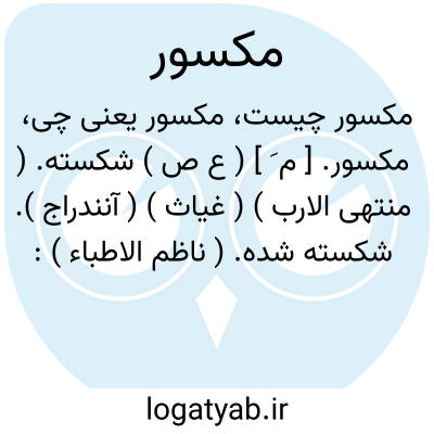 مکسور. [ م َ ] ( ع ص ) شکسته. ( منتهی الارب ) ( غیاث ) ( آنندراج ). شکسته شده. ( ناظم الاطباء ):