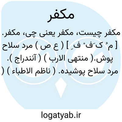 مکفر. [ م ُ ک َف ْ ف ِ ] ( ع ص ) مرد سلاح پوش.( منتهی الارب ) ( آنندراج ). مرد سلاح پوشیده. ( ناظم الاطباء ) ( از اقرب الموارد ). || کافرخواننده کسی را. ( غیاث ) ( آنندراج ) ( از اقرب الموارد ). آنکه کسی را کافر می خواند و تکفیر می کند آن را. ( ناظم الاطباء ). تکفیرکننده. || کفاره دهنده. ( غیاث ) ( آنندراج ). کفاره کننده. ( یادداشت به خط مرحوم دهخدا ).