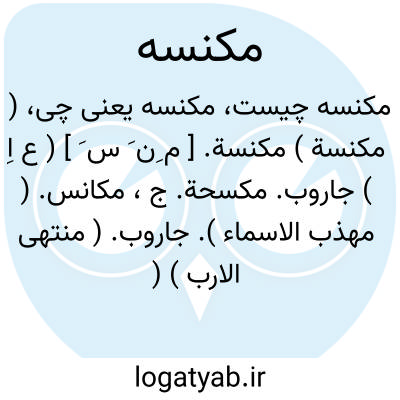 ( مکنسة ) مکنسة. [ م ِن َ س َ ] ( ع اِ ) جاروب. مکسحة. ج، مکانس. ( مهذب الاسماء ). جاروب. ( منتهی الارب ) ( آنندراج ) ( ناظم الاطباء ) ( از اقرب الموارد ). جارو. مسفرة. محسرة. محوقة. ( یادداشت به خط مرحوم دهخدا ). و رجوع به ماده بعد شود.