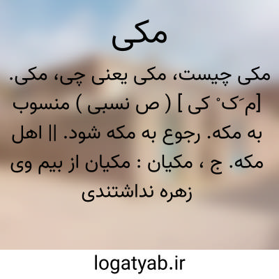 مکی. [ م َک ْ کی ] ( اِخ ) دهی از دهستان مرکزی بخش ریوش است که در شهرستان کاشمر واقع است و 696 تن سکنه دارد. ( از فرهنگ جغرافیایی ایران ج 9 ).