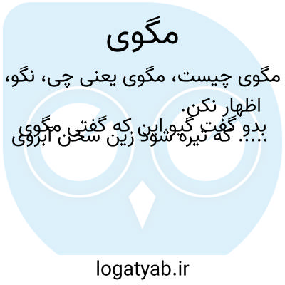 نگو، اظهار نکن. بدو گفت گیو این که گفتی مگوی..... که تیره شود زین سخن آبروی