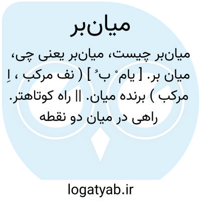 میان بر. [ یام ْ ب ُ ] ( نف مرکب، اِ مرکب ) برنده میان. || راه کوتاهتر. راهی در میان دو نقطه که نسبت به راه یا راههای دیگر کوتاهترین باشد. مستقیم ترین و کوتاهترین راه بین دو نقطه نسبت به راه اصلی که به صورت خط منحنی و منکسر است. اقصر فاصله میان دو نقطه در مسافت. راهی که اضلاع را نپیماید و از زاویه ای به زاویه ای محاذی شود. ( از یادداشت مؤلف ).
