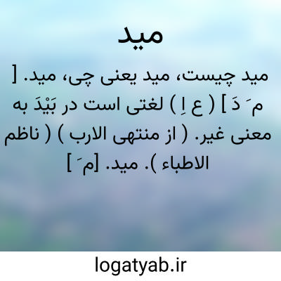 مید. [ م َ دَ ] ( ع اِ ) لغتی است در بَیْدَ به معنی غیر. ( از منتهی الارب ) ( ناظم الاطباء ).
