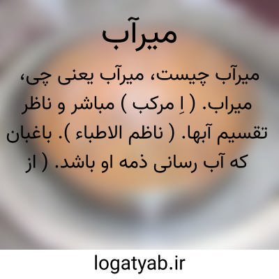 میر آب: نگهبان آب، کسی که آبرابخانه هاوباغهاوکشتزارهاتقسیم میکند، آبیار، میراو هم گفته شده