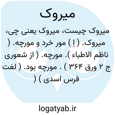 میروک. ( اِ ) مور خرد و مورچه. ( ناظم الاطباء ). مورچه. ( از شعوری ج 2 ورق 364 ). مورچه بود. ( لغت فرس اسدی ) ( فرهنگ اوبهی ). به معنی مورچه باشد. ( انجمن آرا ). به معنی مورچه باشد و بدل مورک است. ( آنندراج ). به معنی مورچه باشد که مصغر مور است و از حشرات الارض باشد. ( برهان ). مورک. مورچه. مور خرد. ( یادداشت لغت نامه ). در لغت نامه اسدی می نویسد: میروک مورچه بود و بیت عنصری را شاهد می آورد: چو میروک را سال...؛ ولی بی شبهه این میروک، حیوانی مانند ققنس و امثال آن بوده است، چه هیچ کس تاکنون عمر مورچه را هزار سال نگفته است و مشهودات بشر از اول این بوده است که سالی نیمی از سکنه ٔیک قریه نمل می مرده اند و پوست مردگان را دیگران به خارج لانه می ریخته اند. ( یادداشت مؤلف ):