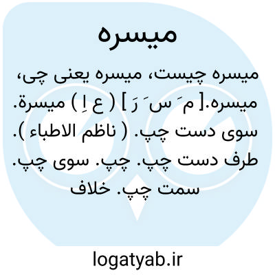 ( اسم ) ۱ - طرف چپ. ۲ - جانب چپ میدان جنگ جناح ایسر مقابل میمنه. ۳ - قسمتی از لشکریان که در جانب چپ میدان جنگ جای گیرند مقابل میمنه: [ اصحاب مشامه درعرصات حضرت حشرگشته و میمنه بیخبر احزاب شیطان پیرامن جناب سلطان فرو گرفته و میسره غافل. ] جمع: میاسر.