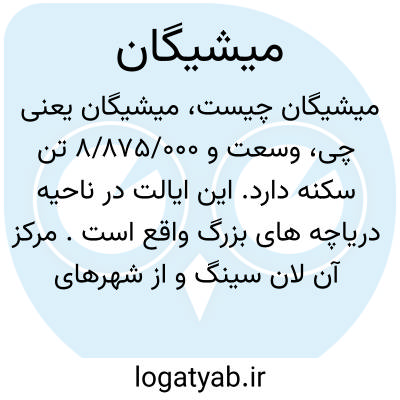 وسعت و ۸/۸۷۵/٠٠٠ تن سکنه دارد. این ایالت در ناحیه دریاچه های بزرگ واقع است. مرکز آن لان سینگ و از شهرهای عمده آن دیترویت فلینت دیربورن پونتیاک و گراندرپتیس می باشد. شهری در یونان مرکزی در کنار تنگه کرنت که ۱۷٠٠٠ تن سکنه دارد و در محل شهر