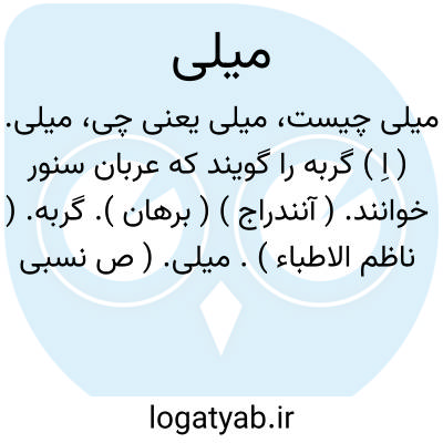 میلی. ( اِ ) گربه را گویند که عربان سنور خوانند. ( آنندراج ) ( برهان ). گربه. ( ناظم الاطباء ).
