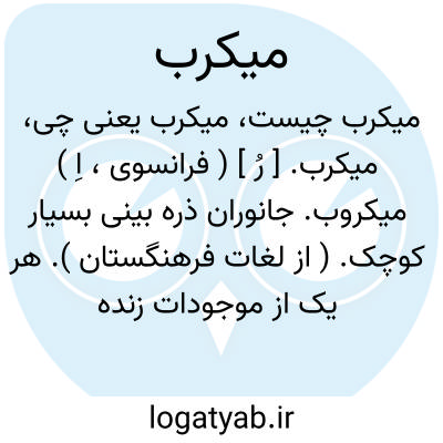 (اسم ) هریک از موجودات زنده یک سلولی و ذره بینی ( اعم از موجودات یک سلولی گیاهی یا حیوانی ) که غالبابیماری زا میباشد. میکربهارا معمولا به سه دسته میکربهای جانوری و میکربهای گیاهی و ویروس ها تقسیم میکنند. دسته اول جزو جانوران یک سلولی یا آغازیان اند دسته دوم جزو گیاهان یک سلولی ( باکتریها قارچ های یک سلولی ) میباشند ولی ویروس ها با وجود آنکه جزو عوامل زنده محسوبند در تقسیم بندی جانوری یا گیاهی محل آنها مشخص نیست.