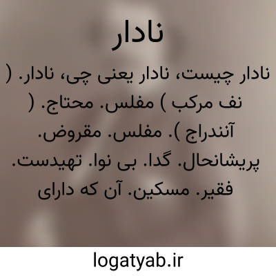 نادار. ( نف مرکب ) مفلس. محتاج. ( آنندراج ). مفلس. مقروض. پریشانحال. گدا. بی نوا. تهیدست. فقیر. مسکین. آن که دارای مال و دولت نباشد. ( ناظم الاطباء ). فقیر. بی نوا. ( فرهنگ نظام ). ارزانی. ندار. مقابل دارا. || زمین دار و کشاورز فقیر و بی بضاعت. ( ناظم الاطباء ).