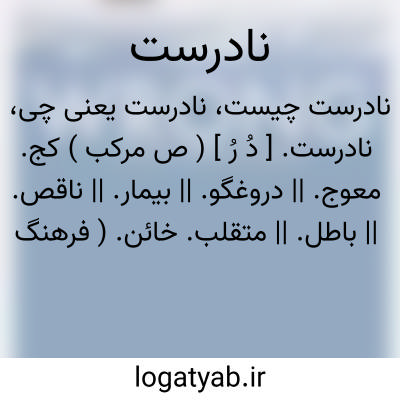 نادرست. [ دُ رُ ] ( ص مرکب ) کج. معوج. || دروغگو. || بیمار. || ناقص. || باطل. || متقلب. خائن. ( فرهنگ فارسی معین ).