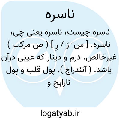 ناسره. [ س َ رَ / رِ ] ( ص مرکب ) غیرخالص. درم و دینار که عیبی درآن باشد. ( آنندراج ). پول قلب و پول نارایج و ناتمام عیار. ( ناظم الاطباء ). مغشوش. ( منتهی الارب ). قلب. ناروا. بدل. نبهره. ماخ. بهرج. پایه. زیف: صراف بدیع عقل دراهم ناسره برنگیرد. ( کلیله و دمنه ).