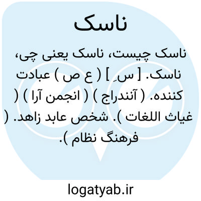 ناسک. [ س ِ ] ( ع ص ) عبادت کننده. ( آنندراج ) ( انجمن آرا ) ( غیاث اللغات ). شخص عابد زاهد. ( فرهنگ نظام ). عابد. ( ناظم الاطباء ) ( منتهی الارب ) ( مهذب الاسماء ) ( المنجد ). عابد.متزهد. ( اقرب الموارد ). متعبد. ( معجم متن اللغة ). پرهیزکار. ( دهار ). ج، نُسّاک. || در راه خدا قربانی کننده. ( آنندراج )( انجمن آرا ) ( منتخب اللغات ) ( کشف اللغات ) ( غیاث اللغات ). || عشب ناسک؛ شدیدالخضرة. ( اقرب الموارد ) ( معجم متن اللغة ) ( المنجد ). گیاه سخت سرسبز.