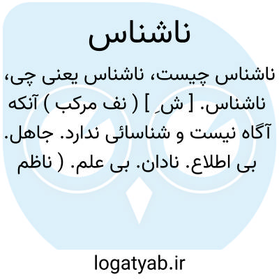 ناشناس. [ ش ِ ] ( نف مرکب ) آنکه آگاه نیست و شناسائی ندارد. جاهل. بی اطلاع. نادان. بی علم. ( ناظم الاطباء ). ناشناسنده: