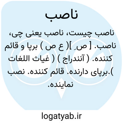 ( اسم ) ۱ - برپاکننده نصب کننده. ۲ - دشمن دارنده. ۳ - آنکه علی ۴ بن ابی طالب وخاندان او را دشمن دارد.۴ - عاملی که معمول خود را نصب دهدجمع:نواصب.