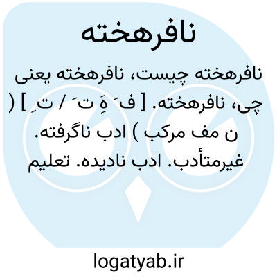 نافرهخته. [ ف َ هَِ ت َ / ت ِ ] ( ن مف مرکب ) ادب ناگرفته. غیرمتأدب. ادب نادیده. تعلیم نیافته. ریاضت ندیده. ناآموخته: ربض؛ شتر نافرهخته. ( السامی فی الاسامی ). || مردم بی ادب و زشت روی باشد. ( برهان ). بی ادب. ( آنندراج ) ( انجمن آرا ). زشت. بدخو. گستاخ. ( از ناظم الاطباء ). زشتخو. بی تربیت. بدمنش: