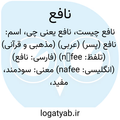 اسم: نافع (پسر) (عربی) (مذهبی و قرآنی) (تلفظ: nāfee) (فارسی: نافع) (انگلیسی: nafee)