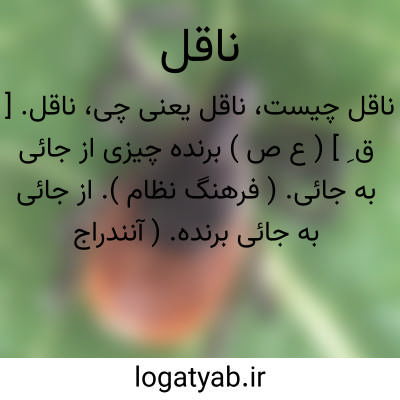 ( اسم ) ۱ - برنده چیزی ازجایی بجایی حامل.۲ - روایت کننده مطلب وخبری حکایت کننده: بصدر شاه رساندند ناقلان که فلان گذاشت طاعت این پادشاه رق رقاب. ( خاقانی لغ. ) ۳ - روایت کننده حدیث وخبرراوی. ۴ - آنکه ازروی نوشته دیگری مطلبی را ۴ - آنکهاز روی نوشته دیگری مطلبی را استنساخ کند ۵- حامل علمی ازعلوم جمع:ناقلین نقله.