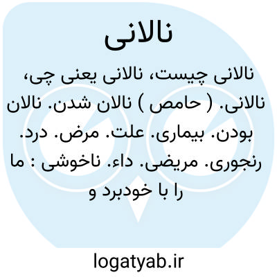 نالانی. ( حامص ) نالان شدن. نالان بودن. بیماری. علت. مرض. درد. رنجوری. مریضی. داء. ناخوشی: ما را با خودبرد و آن نواحی ضبط کرد و به ما سپرد و بازگشت به سبب نالانی و نزدیک آمدن اجل. ( تاریخ بیهقی ). پدر خداوند امروز از ضعف و نالانی چنین است که پوشیده نیست. ( تاریخ بیهقی ص 131 ). امیر گفت: مرا امسال که... آن نالانی افتاد پس از حادثه آب. ( تاریخ بیهقی ص 540 ).