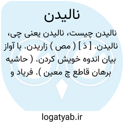 ( مصدر ) ( نالیدنالدخواهدنالیدبنال نالنده نالان نالیده نالش ناله ) ۱ - ناله کردن فریادوفغان کردن: نبینید خویشان و پیوستگان نبینید نالیدن خستگان. ۲ - شکایت کردن گله کردن:[ ازکوتاهی عمرمی نالی ۳ ] ? - دعا کردن بازاری تضرع کردن: چندان دعاکن درنهان چندان بنال اندرشبان کز گنبد هفت آسمان درگوش تو آید صدا. ( دیوان کبیر.۴ ) ۶:۱ - نغمه محزون سردادن آوازحزن انگیز خواندن: طرفه مرغان بردرخت دین همی نالندزار اندر آن گلزار جانت را نوای زار کو ? یانالیدن موسیقی.بترنم در آمدن آن نواخته شدن آن: زنالیدن بوق و بانگ وسرود هوا گشت از آوازبی تار وپود. ۵- بانگ برداشتن خروشیدن:[ واگرهیچ چیزی آلوده بر آن ریگ افکنند بنالد چنانکه رعد بنالد] ۶- تظلم کردن دادخواهی کردن: [ و هرکس که پیش خواجه بزرگ رفت وبنالید جواب آن بودکه کارسلطان وعارض است ومرا درین باب سخنی نیست.] ۷- رنجیدن.۸- مریض شدنبیمارشدن:[ مسکین این فال بز دور است آمد و دیگر روزبنالیدوشب گذشته شدو آنجا دفن کردند ]
