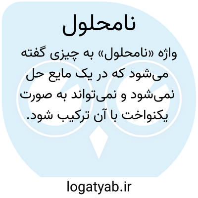 واژه «نامحلول» به چیزی گفته می‌شود که در یک مایع حل نمی‌شود و نمی‌تواند به صورت یکنواخت با آن ترکیب شود. این واژه معمولاً در علوم شیمی و فیزیک به کار می‌رود تا ویژگی‌های مواد و رفتار آن‌ها در محیط‌های مختلف را توضیح دهد. برای مثال، شن و ماسه در آب نامحلول هستند زیرا نمی‌توانند در آب ذوب شوند و معمولاً ته‌نشین می‌شوند. وجود این ویژگی در یک ماده به خواص شیمیایی و ساختار مولکولی آن بستگی دارد و تعیین می‌کند که ماده در چه مایعاتی حل می‌شود یا غیرقابل حل باقی می‌ماند. نمونه دیگر، روغن است که در آب حل نمی‌شود اما در الکل قابل حل است. بررسی نامحلول یا محلول بودن مواد به دانشمندان کمک می‌کند تا واکنش‌های شیمیایی را پیش‌بینی و کنترل کنند و برای تولید داروها، مواد غذایی و محصولات صنعتی تصمیمات درست بگیرند. در علوم زیستی نیز برخی ویتامین‌ها و مواد مغذی خاص نامحلول هستند و برای جذب به کمک چربی‌ها نیاز دارند، مانند ویتامین‌های A، D، E و K. این ویژگی نشان می‌دهد که هر ماده دارای رفتار متفاوتی در مایعات مختلف است و مطالعه آن برای کاربردهای علمی و صنعتی ضروری است.