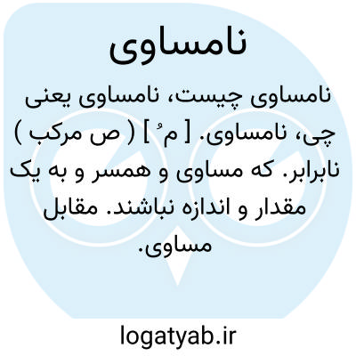 نامساوی. [ م ُ ] ( ص مرکب ) نابرابر. که مساوی و همسر و به یک مقدار و اندازه نباشند. مقابل مساوی.