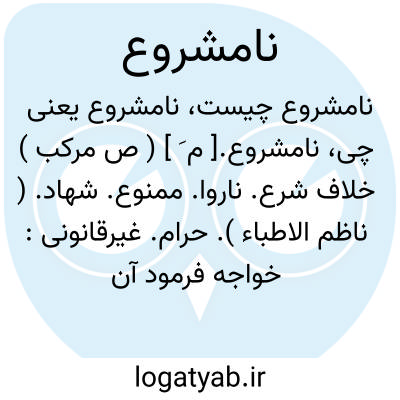 نامشروع.[ م َ ] ( ص مرکب ) خلاف شرع. ناروا. ممنوع. شهاد. ( ناظم الاطباء ). حرام. غیرقانونی: خواجه فرمود آن کار حرام و نامشروع است. ( انیس الطالبین ص 91 ).
