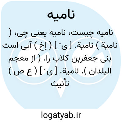 ۱ - (اسم ) مونث نامی بالنده نموکننده: [ این ساعت دراین فصل...نامه زوال نامیه خواندن گیرند.] ۲ - ( اسم ) آفرینش خدای خلق خدای.۳ - نبات رستنی رویشی.یا قوت (قوه ) نامیه.یا روح نامیه.یانفس نامیه.