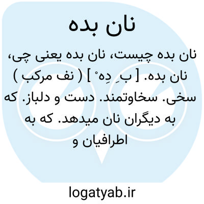 نان بده. [ ب ِ دِه ْ ] ( نف مرکب ) سخی. سخاوتمند. دست و دلباز. که به دیگران نان میدهد. که به اطرافیان و زیردستان نان میرساند. نان رسان. نان ده. سخی خاصه نسبت به نوکران و پیشکاران.