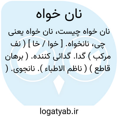 نانخواه. [ خوا / خا ] ( نف مرکب ) گدا. گدائی کننده. ( برهان قاطع ) ( ناظم الاطباء ). نانجوی. ( آنندراج ). آنکه نان طلبد. دریوزه گر: