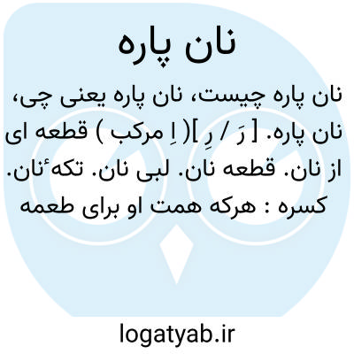 نان پاره. [ رَ / رِ ]( اِ مرکب ) قطعه ای از نان. قطعه نان. لبی نان. تکه ٔنان. کسره: هرکه همت او برای طعمه است درزمره بهایم معدود گردد چون سگی گرسنه که به استخوانی شاد شود و به نان پاره ای خشنود. ( کلیله و دمنه ).