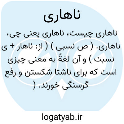 ( صفت واسم ) ۱ - چیزی که برای ناشتا شکستن ورفع گرسنگی خورند.۲ - غذایی اندک که پیش ازطعام خورند: ای بازسپیدمخورکبکان را مردارمخوربسان ناهاری. ( ناصرخسرو.۳ ) ۴۷٠ - غذایی که دروسط روزخورندناهارنهار: بامدادانت دهد و عده بشامی خوش شامگاهانت دهد و عده بناهاری. (ناصرخسرو.۴۱۷ )