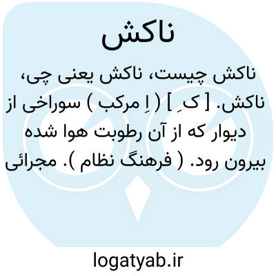 ناکش. [ ک ِ ] ( اِ مرکب ) سوراخی از دیوار که از آن رطوبت هوا شده بیرون رود. ( فرهنگ نظام ). مجرائی و روزنی در دیوار بنا که هوا در آن جاری باشد و رفع رطوبت هوا کند. سوراخی برای بیرون شدن عفونت چاه ِ مبرز و جز آن. راهی و منفذی که برای رفع و بیرون شدن بوی بد کنند مستراح را.