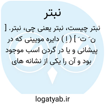نبتر. [ ن َ ت َ ] ( اِ ) دایره مویینی که در پیشانی و یا در گردن اسب موجود بود و آن را یکی از نشانه های خوب و نیکو می شمرند هر چند که در سینه و یا زیر بغل وی عیب باشد. ( ناظم الاطباء ).