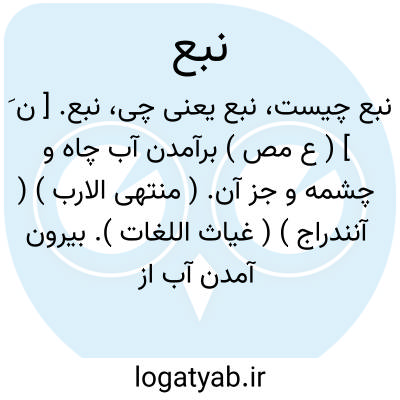 نبع. [ ن َ ] ( ع مص ) برآمدن آب چاه و چشمه و جز آن. ( منتهی الارب ) ( آنندراج ) ( غیاث اللغات ). بیرون آمدن آب از چشمه. ( از اقرب الموارد ). نُبوع. ( منتهی الارب ). نَبَعان. ( معجم متن اللغة ). جوشیدن آب از چشمه. ( فرهنگ خطی ):