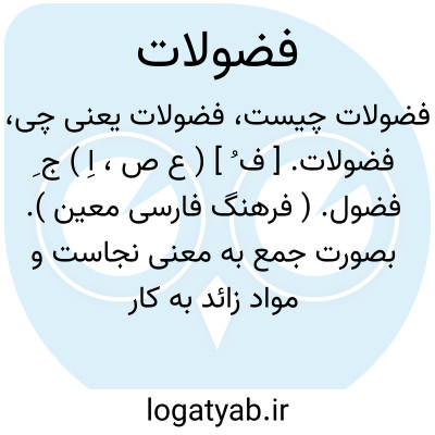 فضولات. [ ف ُ ] ( ع ص، اِ ) ج ِ فضول. ( فرهنگ فارسی معین ). بصورت جمع به معنی نجاست و مواد زائد به کار میرود.