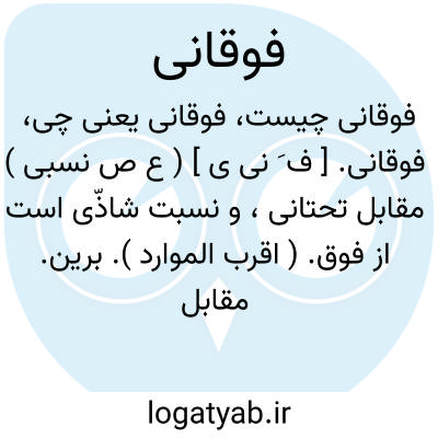 فوقانی. [ ف َ نی ی ] ( ع ص نسبی ) مقابل تحتانی، و نسبت شاذّی است از فوق. ( اقرب الموارد ). برین. مقابل زبرین. مقابل تحتانی: طبقه فوقانی، اطاق فوقانی. ( یادداشت مؤلف ). || حرفی که یک یا چندنقطه بالا دارد. ( یادداشت مؤلف ). || جامه ای که بر روی همه جامه ها پوشند. ( یادداشت مؤلف ).