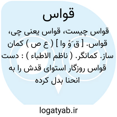 قواس. [ ق َوْ وا ] ( ع ص ) کمان ساز. کمانگر. ( ناظم الاطباء ): دست قواس روزگار استوای قدش را به انحنا بدل کرده بود. ( سندبادنامه ص 182 ). || کمان کش. کمان دار. ( ناظم الاطباء ).