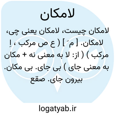 لامکان. [ م َ ] ( ع ص مرکب، اِ مرکب ) ( از: لا به معنی نه + مکان به معنی جای ) بی جای. بی مکان. بیرون جای. صقع باری تعالی. صقع واجب. ناکجاآباد: