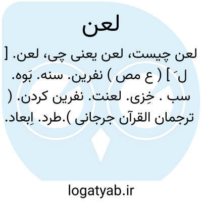 لعن. [ ل َ ] ( ع مص ) نفرین. سنه. بَوه. سب. خِزی. لعنت. نفرین کردن. ( ترجمان القرآن جرجانی ).طرد. اِبعاد. راندن و دور کردن از نیکی و رحمت. ( منتهی الارب ). دور کردن از خیر. ضد برکت. ( قاموس کتاب مقدس ). جرجانی در تعریفات گوید: لعن من اﷲ، هو ابعاد بسخطه و من الانسان الدعاء بسخطه. ( تعریفات ). || از صورت بگردانیدن. ( ترجمان القرآن جرجانی ).
