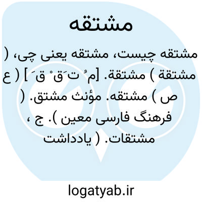( مشتقة ) مشتقة. [م ُ ت َق ْ ق َ ] ( ع ص ) مشتقه. مؤنث مشتق. ( فرهنگ فارسی معین ). ج، مشتقات. ( یادداشت به خط مرحوم دهخدا ).