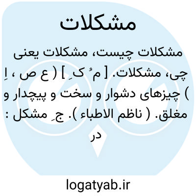 ( اسم ) جمع مشکله ( مشکل ): و چو بنیاد این کتاب بر گشایش مشکلات دینی و معضلات فلسفی بود نام نهادم مر این کتاب را جامع الحکمتین.