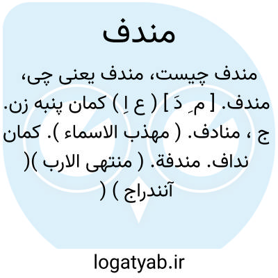 مندف. [ م ِ دَ ] ( ع اِ ) کمان پنبه زن. ج، منادف. ( مهذب الاسماء ). کمان نداف. مندفة. ( منتهی الارب )( آنندراج ) ( از ناظم الاطباء ) ( از اقرب الموارد ). کمان حلاجی. کمان حلاج. مِحبَض. ( یادداشت مرحوم دهخدا ).