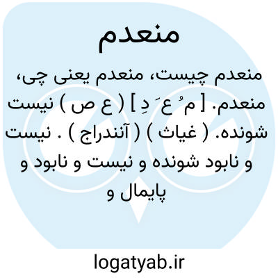 منعدم. [ م ُ ع َ دِ ] ( ع ص ) نیست شونده. ( غیاث ) ( آنندراج ). نیست و نابود شونده و نیست و نابود و پایمال و زیر و زبر و ناپدید و معدوم و برطرف گشته و ویران و خراب شده و تباه گشته و ضایع و نایاب. ( ناظم الاطباء ).