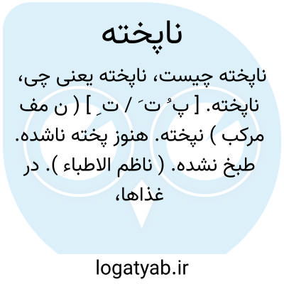 ناپخته. [ پ ُ ت َ / ت ِ ] ( ن مف مرکب ) نپخته. هنوز پخته ناشده. طبخ نشده. ( ناظم الاطباء ). در غذاها، گوشت و امثال آن. غیرمطبوخ. پخته نشده. خام. نی. اسلغ. عَفِص. ( بحرالجواهر ):