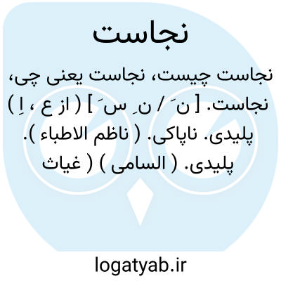 ۱ - ( مصدر ) ناپاک بودن.۲ - ( اسم ) ناپاکی پلیدی: جایی که خاک پاک باشدطلب کندچنانکه در آن هیچ نجاستی نبود.۳ - (اسم ) فضله انسان ودیگرحیوانات (بجزستور ) غایط جمع:نجاسات.توضیح نجاست اطلاق شودبدانچه کهچون لباس یابدن بان آلوده گرددنمازکردننشاید.نجاسات عبارتند از: ۱ و۲ - بول وغایط حیوان حرام - گوشت و دارای نفس سایله.۳ و۴ و۵ - مرده وخون ومنی ازحیوان حرام گوشت ودارای نفس سایله.۶ - سگ بری.۷ - خوک بری.۸ - کافر.۹ - مسکری که نوعامایع است.۱٠ - آب جو.( لباس و بدن نمازگزارنبایدبدیننجاسات آلوده باشد ).