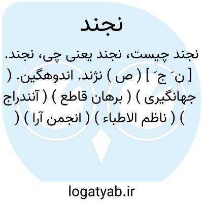 نجند. [ ن َ ج َ ] ( ص ) نژند. اندوهگین. ( جهانگیری ) ( برهان قاطع ) ( آنندراج ) ( ناظم الاطباء ) ( انجمن آرا ) ( فرهنگ نظام ). غمناک. ( برهان قاطع ) ( ناظم الاطباء ). افسرده. ( آنندراج ) ( فرهنگ نظام ) ( جهانگیری ) ( انجمن آرا ).
